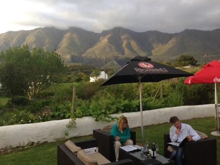 Evening in Swellendam, enjoying drinks before dinner.